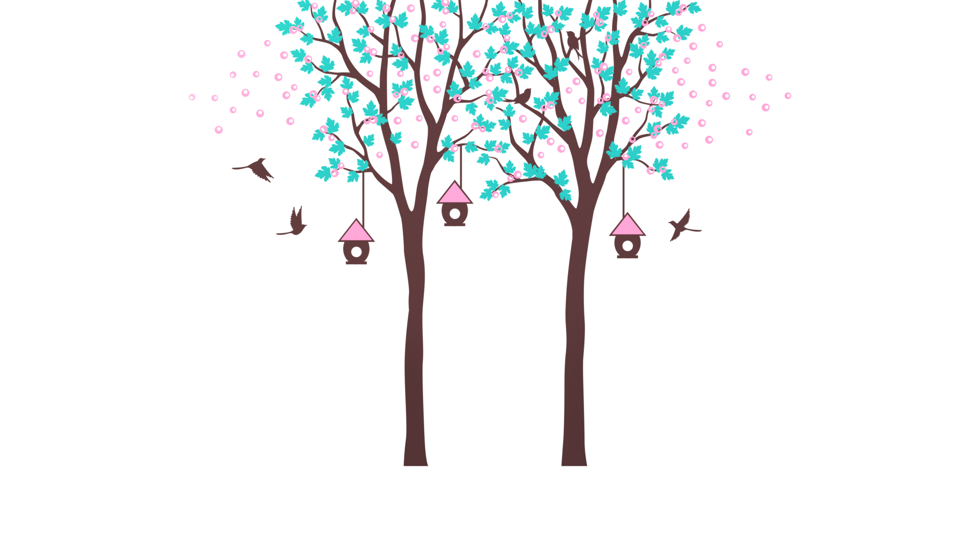 This twin tree design complete with bird boxes, birds, and blossom is a great wall sticker that will add colour and something unique to whatever wall you decide to grace it with.